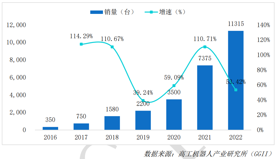 近幾年,無人叉車的確迎來了爆發(fā)式增長機(jī)會。根據(jù)GGII數(shù)據(jù),2016年至2022年中國市場無人叉車銷量年均復(fù)合增速近72%,市場規(guī)模從2016年的2.39億元增至2022年的22.63億元,7年間膨脹了近十倍,即便如此,無人叉車滲透率在2022年才第一次突破1%達(dá)到1.65%。