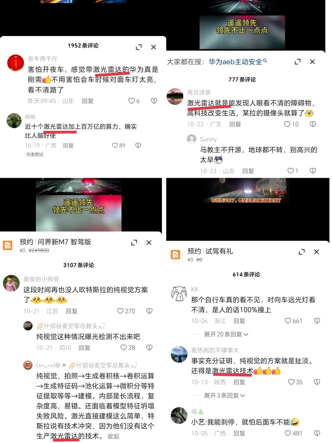 不少網(wǎng)友看到此類“救駕”視頻,紛紛感慨,也發(fā)表了自己對激光雷達(dá)與智駕車的看法: