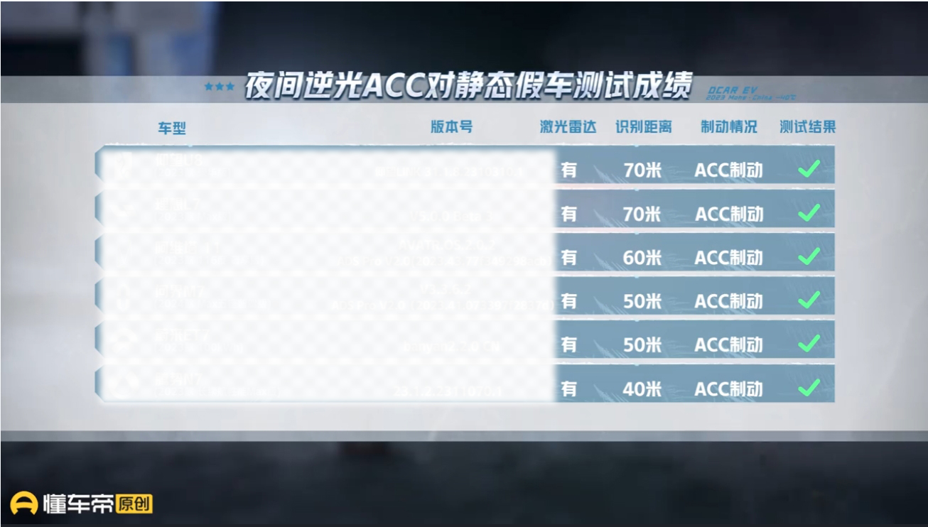 然而,在夜間雪地ACC測試與逆光測試中,搭載激光雷達(dá)的車型展現(xiàn)出了顯著的優(yōu)勢。