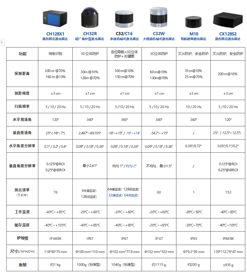 為客戶(hù)提供自研自產(chǎn)的高性能激光雷達(dá),涵蓋905nm混合固態(tài)激光雷達(dá)、多線(xiàn)機(jī)械式導(dǎo)航激光雷達(dá)、大視場(chǎng)角補(bǔ)盲機(jī)械式激光雷達(dá)、單線(xiàn)激光雷達(dá)等,為無(wú)人叉車(chē)提供高精度環(huán)境感知、定位導(dǎo)航及安全避障,助力打造高效、安全、智能的3D SLAM無(wú)人叉車(chē)/AMR。
