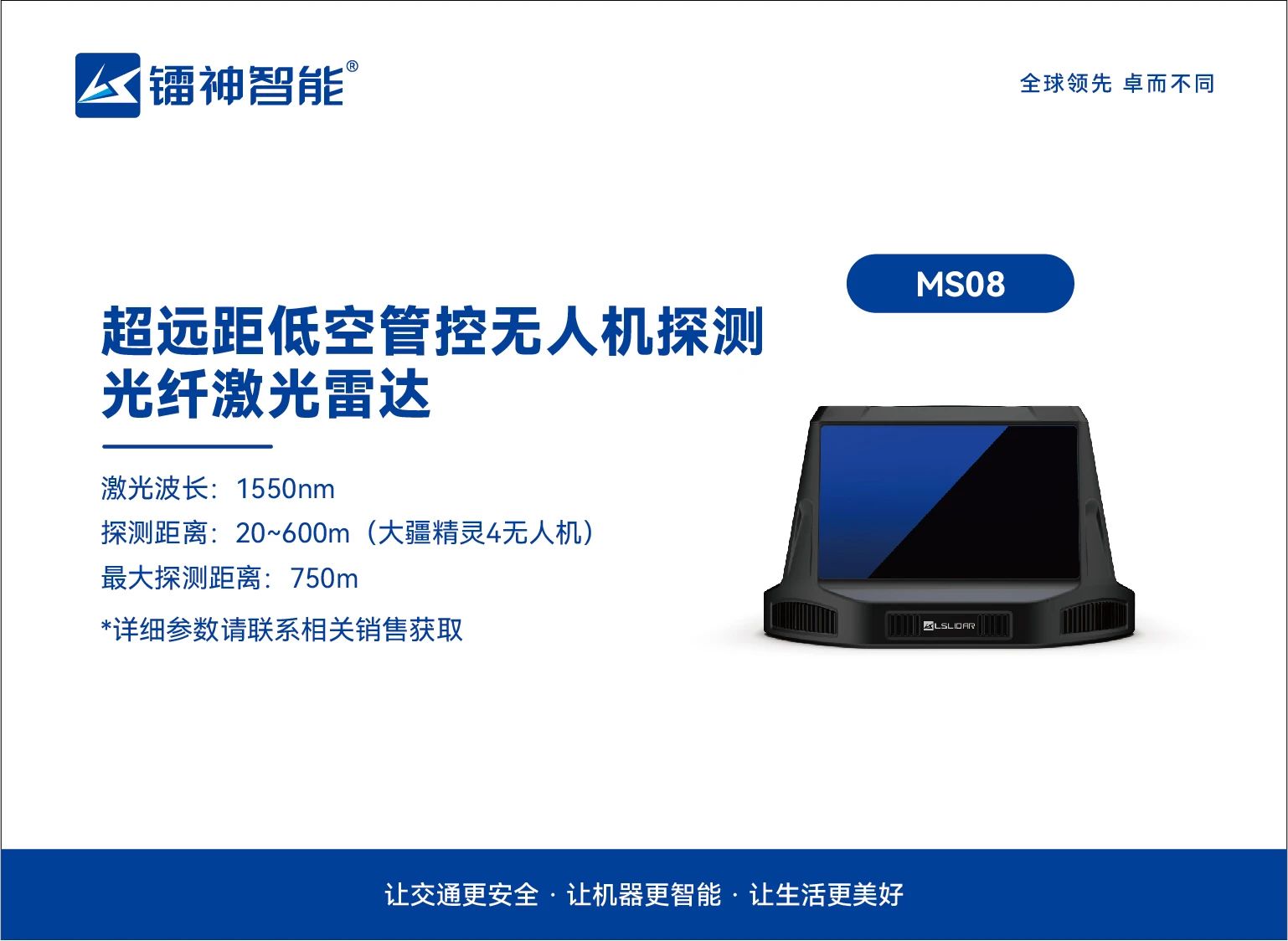 在低空經(jīng)濟(jì)蓬勃發(fā)展的今天,無(wú)人機(jī)物流、空中巡檢、應(yīng)急救援等新興場(chǎng)景正加速落地,但隨之而來(lái)的低空安全隱患也日益凸顯。鐳神智能推出的MS08超遠(yuǎn)距低空管控?zé)o人機(jī)探測(cè)光纖激光雷達(dá),以750米超遠(yuǎn)探測(cè)距離和360°x45°無(wú)死角監(jiān)測(cè)能力,為低空安全筑起一道智能防線,助力打造高效、可靠的低空安全數(shù)字底座。