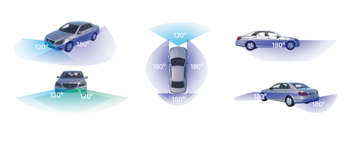 通過在車前保位置上安裝1臺(tái)或2臺(tái)CH128X1激光雷達(dá),車身左右側(cè)及后方各安裝1臺(tái)CH64W補(bǔ)盲激光雷達(dá),可實(shí)現(xiàn)前方遠(yuǎn)距離探測(cè)提前預(yù)警,以及掃除車周安全盲區(qū)。