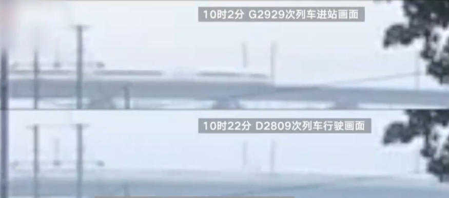 前通過列車和D2809列車的監(jiān)控畫面