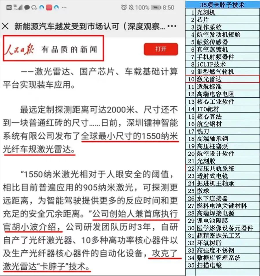 徹底攻克我國(guó)被“卡脖子”的35項(xiàng)關(guān)鍵技術(shù)之一的激光雷達(dá)技術(shù)問題并獲《人民日?qǐng)?bào)》報(bào)道