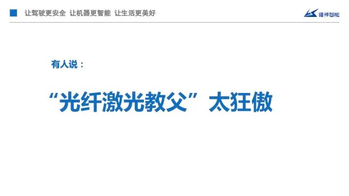 2022年總體而言我們過得比較郁悶,為什么比較郁悶?我們做了全世界性能最好的光纖車規(guī)激光雷達(dá),我這個絕對是最牛逼、最好的,不信的話,我歡迎任何人拿任何公司的一臺激光雷達(dá)來,找第三方機(jī)構(gòu)去PK。但我們沒有拿到定點(diǎn),原因其實很多,其中有一點(diǎn)是很多主機(jī)廠的兄弟對我很不感冒。特別有一些說我老是喜歡發(fā)微信,喜歡在朋友圈里吹牛逼,而他們喜歡低調(diào)的,但是我看他們老板自己本身也不低調(diào)啊,ARE ?YOU ?OK?低調(diào)嗎?