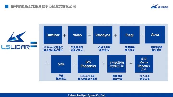 我們需要做的事兒很簡單,我狂不狂妄,得看我們做了什么東西。鐳神做了什么事兒?你們可以看一下。鐳神在激光雷達(dá)領(lǐng)域等于Luminar+法雷奧+Velodyne +Riegl + Aeva + Sick +IPG Photonics+多傳感器融合算法公司+3D SLAM算法系統(tǒng)解決方案公司,美國Luminar能做的我們?nèi)磕茏觯琇uminar做不了的,我十年之前就搞定了。