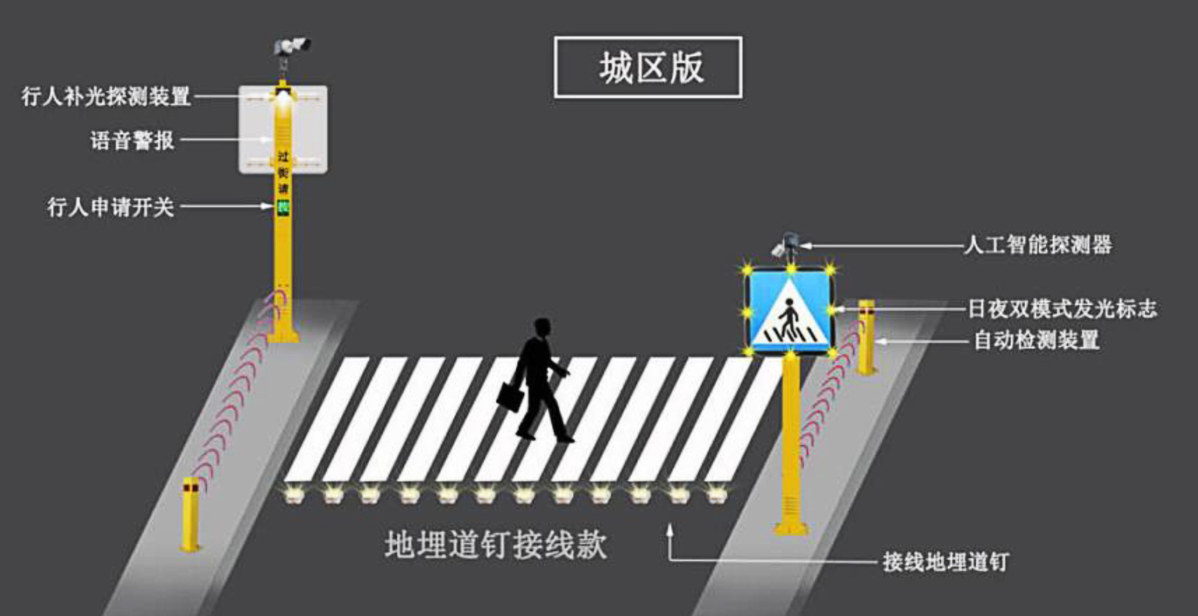 智慧斑馬線:基于原本車路協(xié)同系統(tǒng),將智能探測系統(tǒng)連通斑馬線上的道釘燈,行人路過時會觸發(fā)道釘燈快閃并開啟安全語音提醒,夜間的道釘燈會隨著紅綠燈狀態(tài)而改變顏色,闖紅燈行為也會觸發(fā)抓拍、道釘燈快閃以及語音報警。智慧斑馬線更好的保障行人在通過路口時的人身安全,同時也能提醒路口的車輛注意避讓行人。