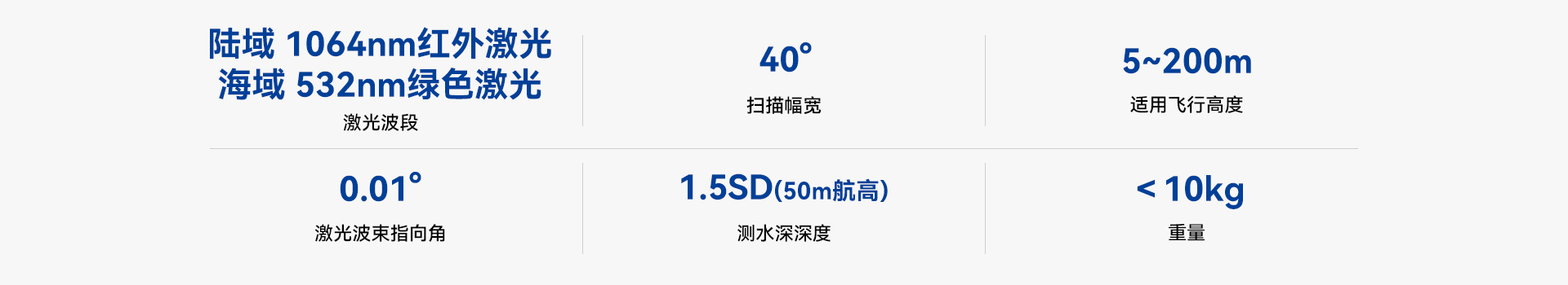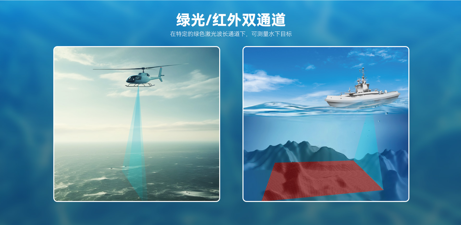 在特定的532nm的綠色激光波長通道下,可測量水下目標(biāo),具備部分水文測量能力。