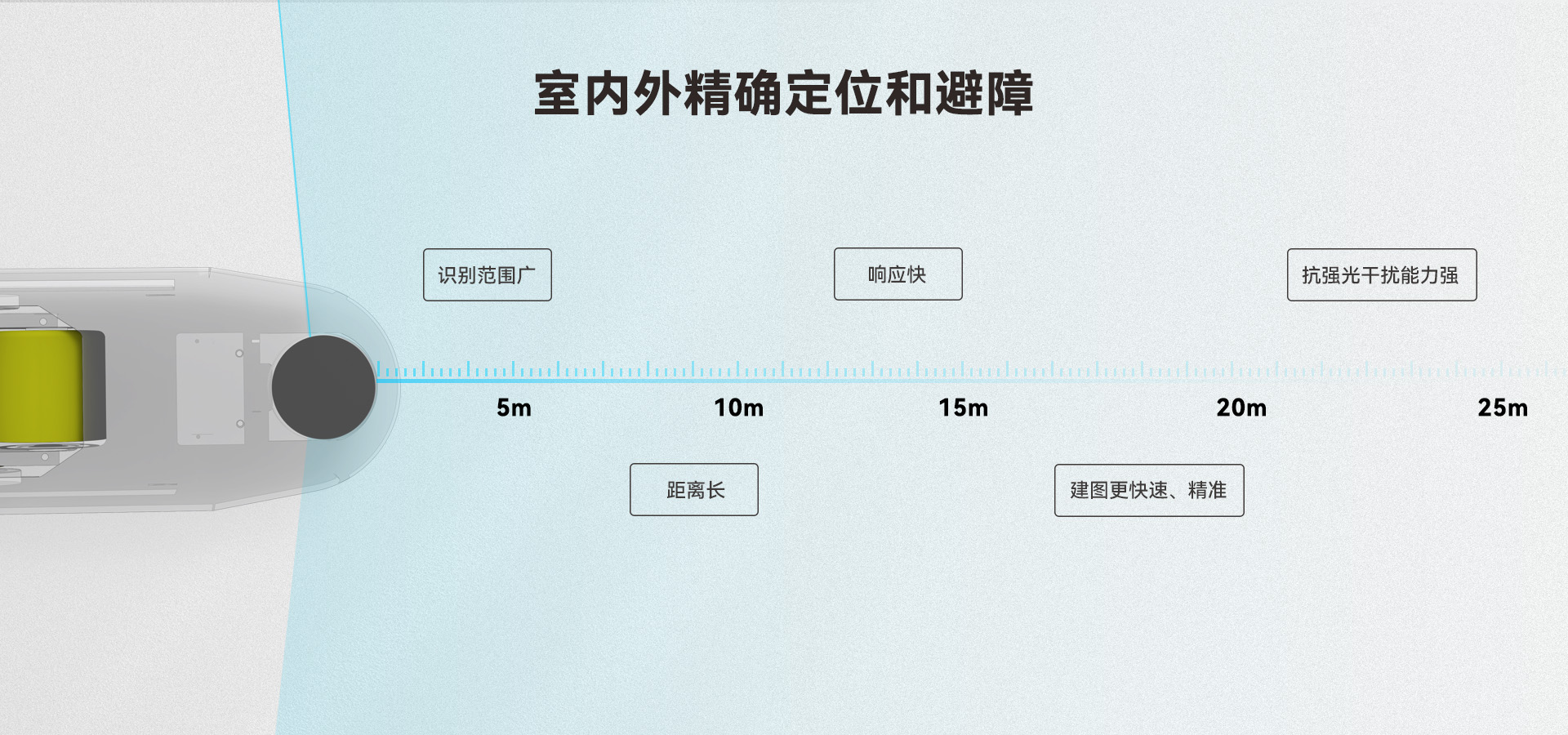 最大量程25米,主要應(yīng)用于室內(nèi)服務(wù)機器人、AGV、清掃消殺機器人、無人機等精確定位和避障的應(yīng)用場合。